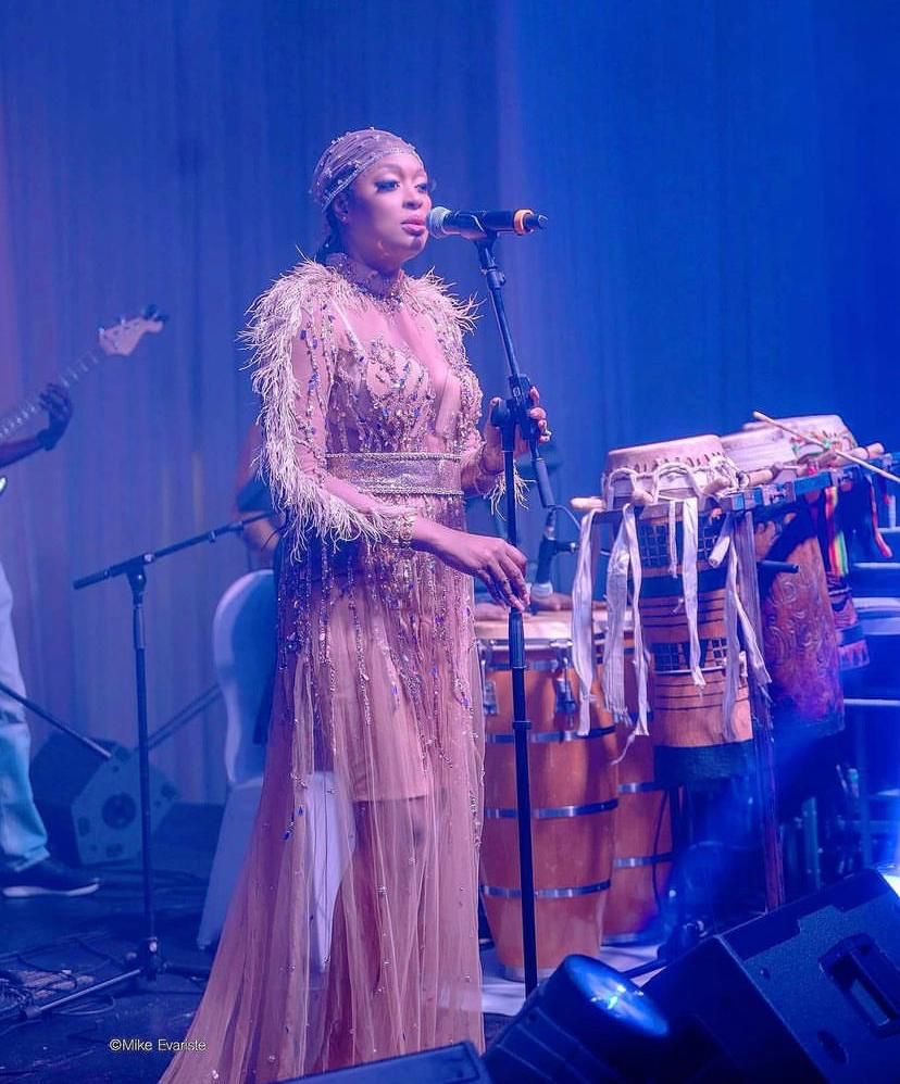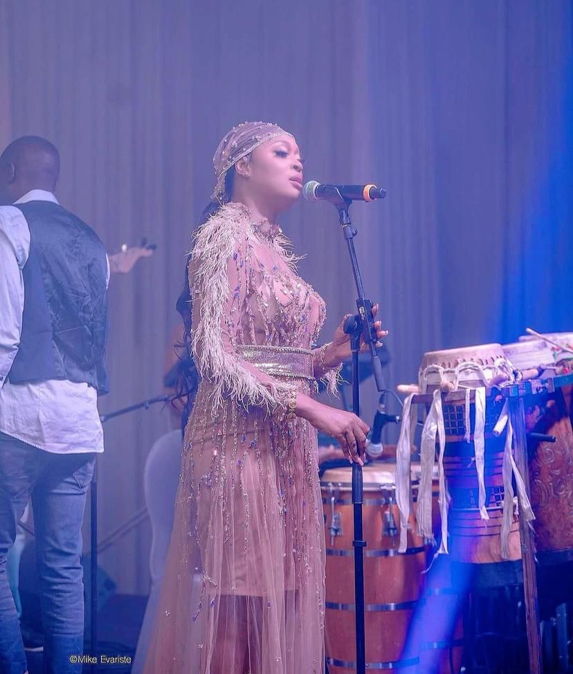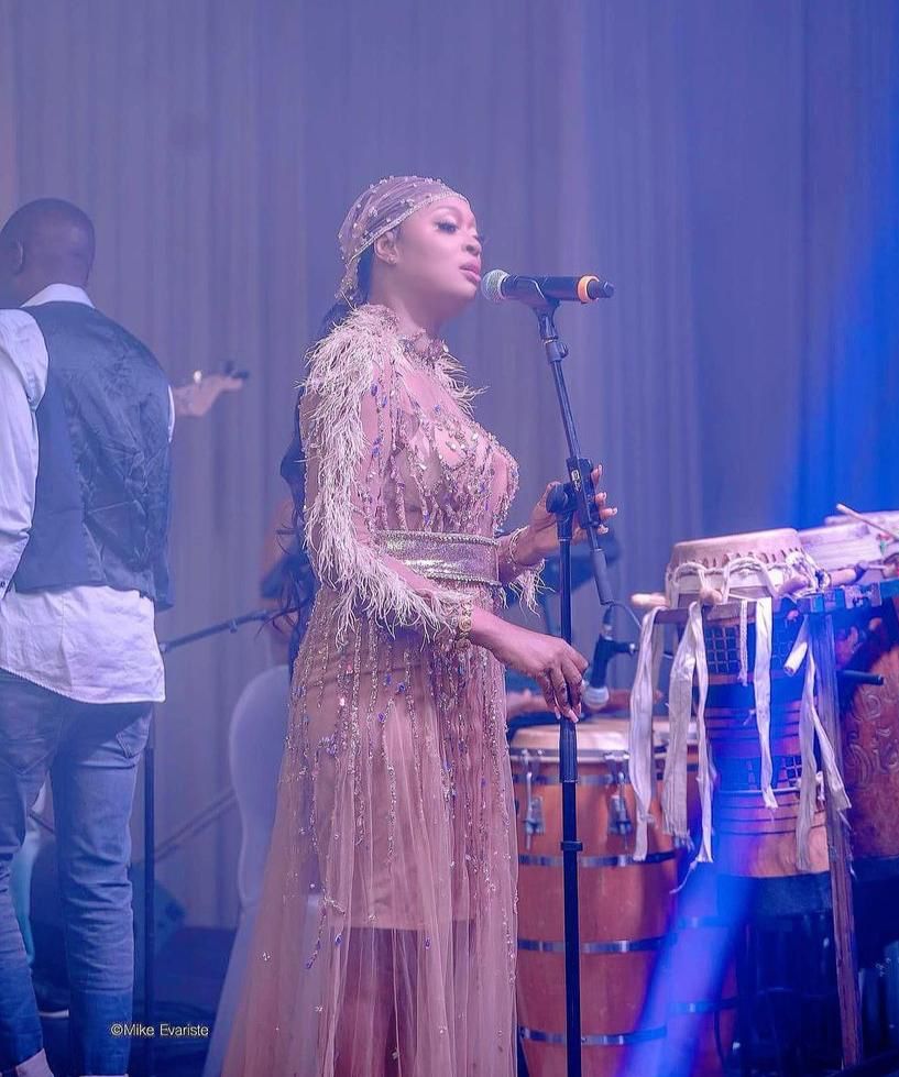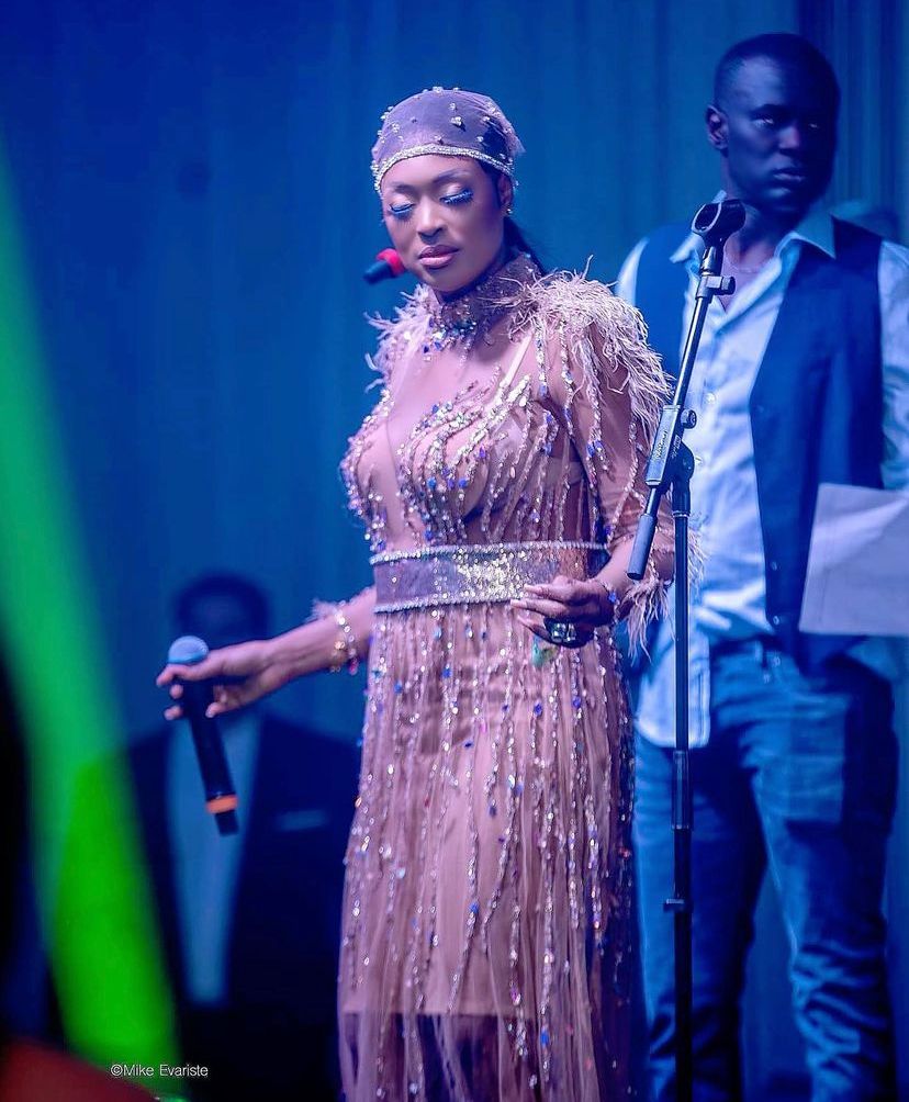 La lionne Titi s’est affichée très belle et classe dans une superbe robe lors d’une soirée.