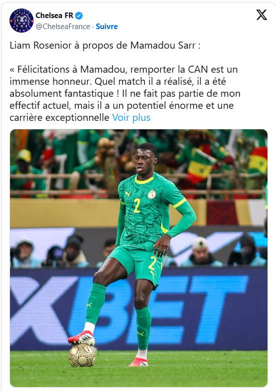Ses performances n’ont pas échappé à Liam Rosenior. L’entraîneur anglais a tenu à saluer publiquement le parcours et le potentiel du jeune international sénégalais, malgré le fait qu’il ne fasse pas encore partie de son effectif direct.