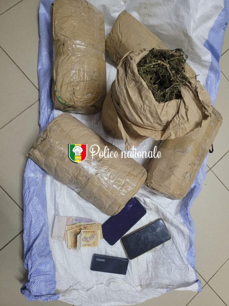 L’opération s’est déroulée près du service des mines à Yarakh, un quartier situé dans la banlieue de Dakar. Les suspects, dont l’un est de nationalité sénégalaise et l’autre étrangère, ont été interpellés en possession de 5 kilogrammes de chanvre indien, soigneusement conditionnés. La saisie s’est accompagnée de plusieurs autres éléments : des téléphones portables, de l’argent liquide, ainsi que deux engins (un scooter et une moto) utilisés, selon les enquêteurs, pour le transport et la distribution de la drogue.