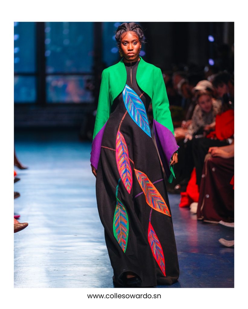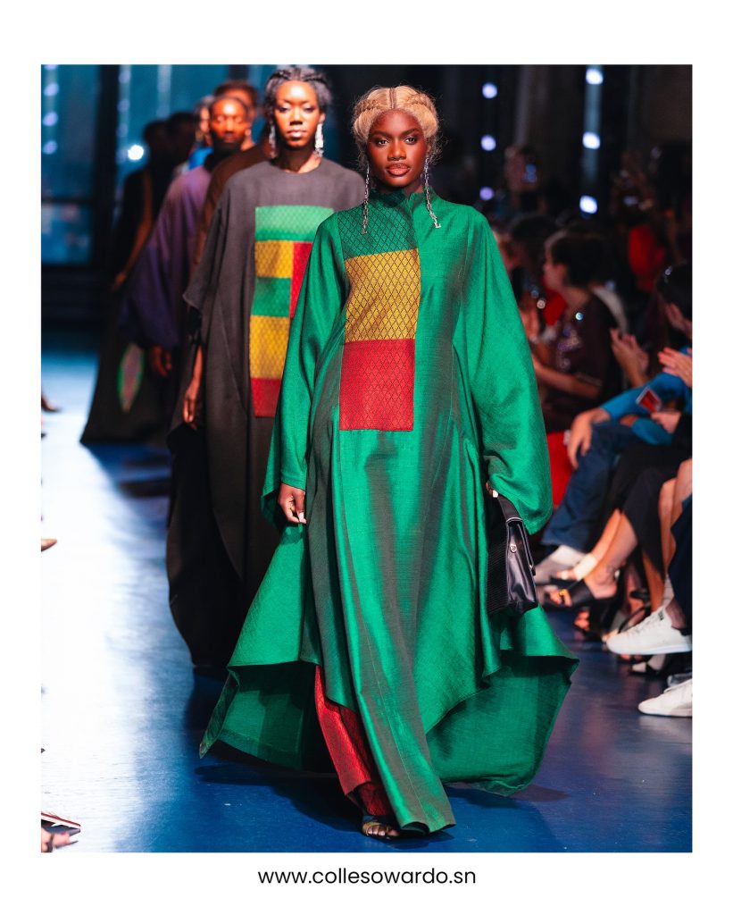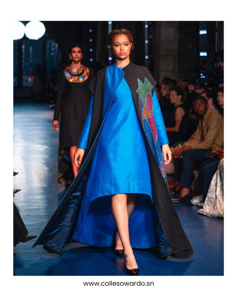 Nous sommes en 1972. Lors d’un séjour en Tunisie, un ami de son époux, séduit par sa silhouette longiligne et sa beauté, lui propose de participer à un défilé de mode. Le mari accepte, la carrière s’esquisse. Ensuite, vont s’ensuivre Paris, ses trottoirs et ses lumières, et puis les podiums, les salons du prêt-à-porter, les défilés de la capitale mondiale de la mode. Collé Ardo Sow s’inscrit à l’Alliance française, puis à l’Institut de Coupe et de Haute Couture. Elle se forme, observe et apprend. Elle défile, oui, mais elle aspire surtout à créer de nouveaux modèles. La soie, le lin, les tissus européens n’ont bientôt plus de secrets pour elle. Et pourtant, c’est dans le retour aux sources qu’elle va trouver.sa signature : le pagne tissé sénégalais, qu’elle va dompter, assouplir, magnifier. En 1983, elle présente sa première collection à Dakar. Une mode résolument ambitieuse, tournée vers le monde.