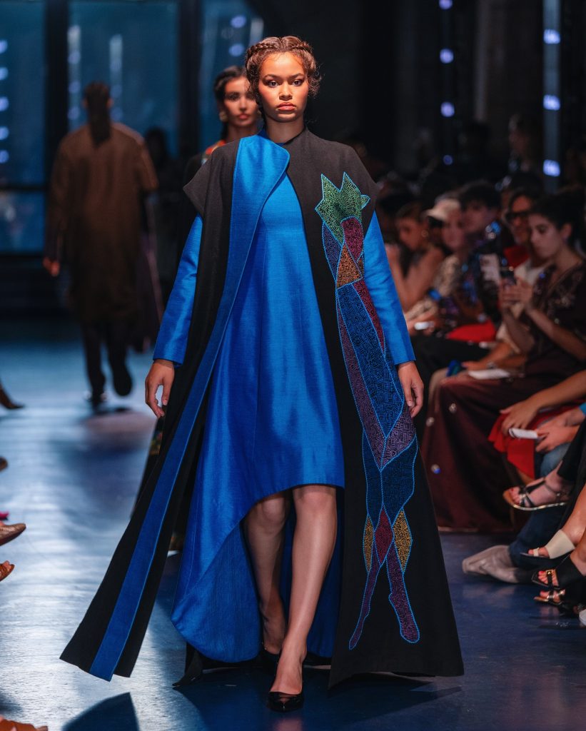 Née à Diourbel, dans le Baol, région au cœur du Sénégal, Collé Ardo Sow est d’origine peulh. Son père décède alors qu’elle n’a que deux ans. Elle grandit dans un foyer élargi, entre oncles, tantes et surtout sa grand-mère, femme forte et aimante, qui la couve et la forme à sa manière. D’abord passée par l’école coranique, puis par un établissement tenu par des religieuses, elle y découvre la couture et le français – deux langages qui deviendront les piliers de sa carrière. Avec une mère couturière et une tante établie à Dakar, spécialisée en haute couture, Collé n’est pas dépaysée dans l’univers des étoffes et des aiguilles. Très vite, le geste devient naturel. La passion, innée. Mais la jeune femme ne rêve pas encore de podiums. À dix-sept ans, elle se marie. Et c’est justement ce mariage qui va, contre toute attente, l’amener à défiler.